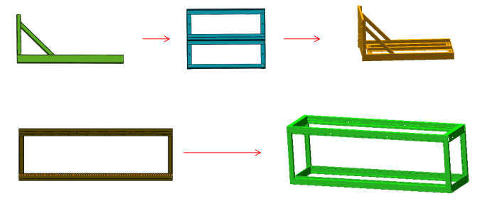 总装首次也是以平台的两侧作为定位基准,利用平尺进行支撑,辅以压紧件进行压紧防止焊接变形,取件时都是松掉平台侧边的平尺使其自动滑落,并由此两侧取件。